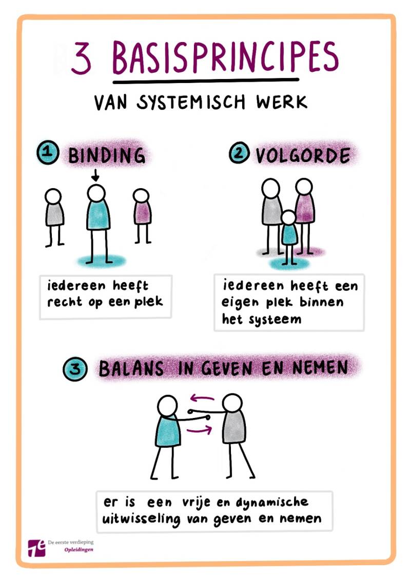 Deze wordt vanuit de 3 Systemische basisprincipes bekeken; Iedereen en alles is verbonden aan een systeem en heeft recht op een plek binnen dat systeem. (Denk hierbij ook aan specifieke gebeurtenissen) Hoe is de volgorde; Waar sta jij en de ander binnen dat systeem? Hoe is de balans tussen geven en nemen?